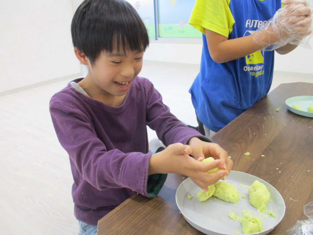 混ざったら自分のスイートポテトを形成、みんな上手に形にしていました✨