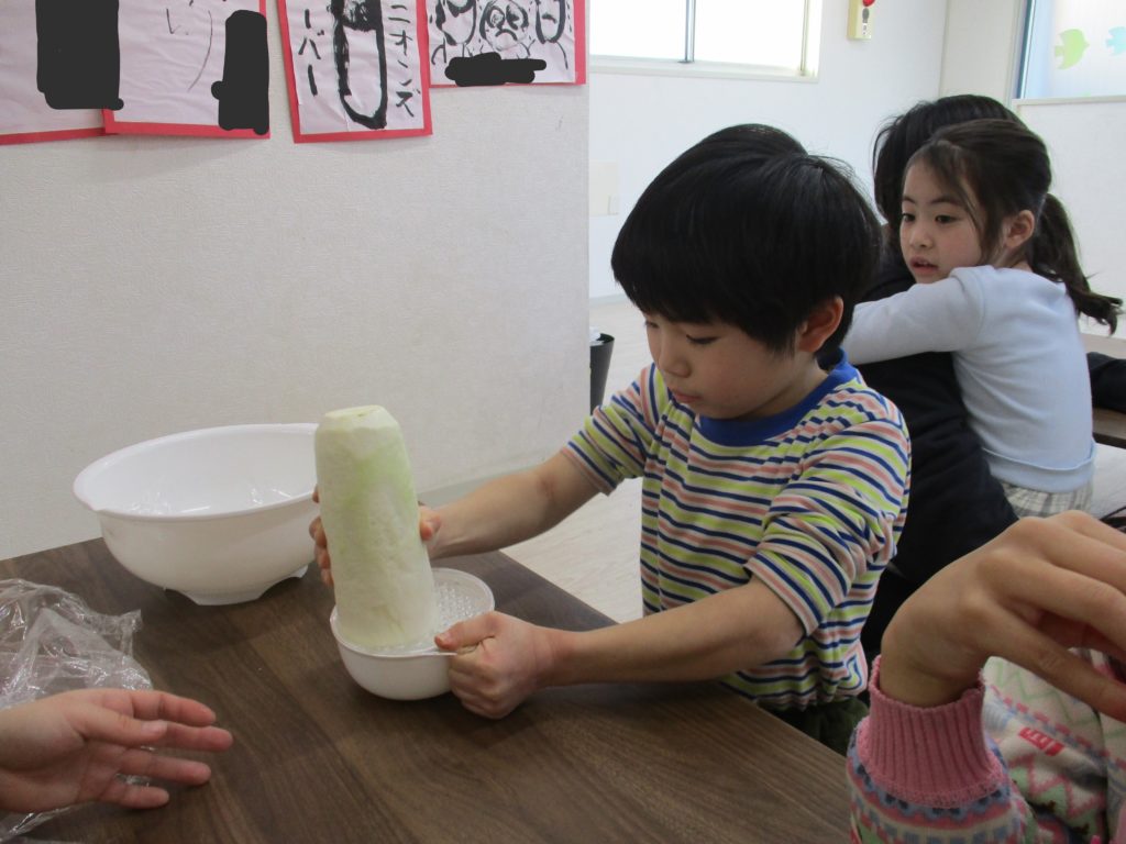 職員と一緒にすりおろしました!