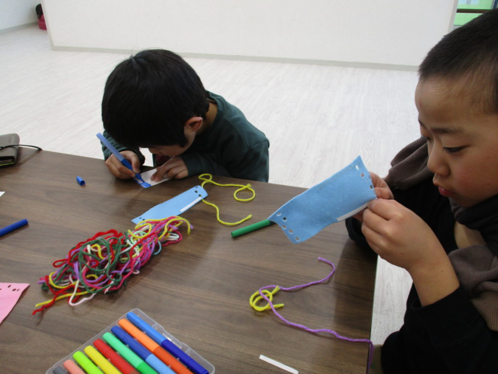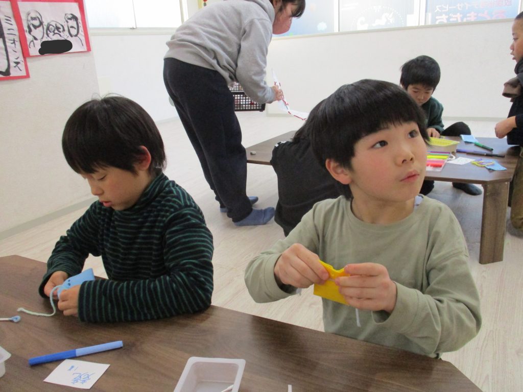 子どもたちには魚に絵を描いてもらい、色塗りをしてもらいました!🎨