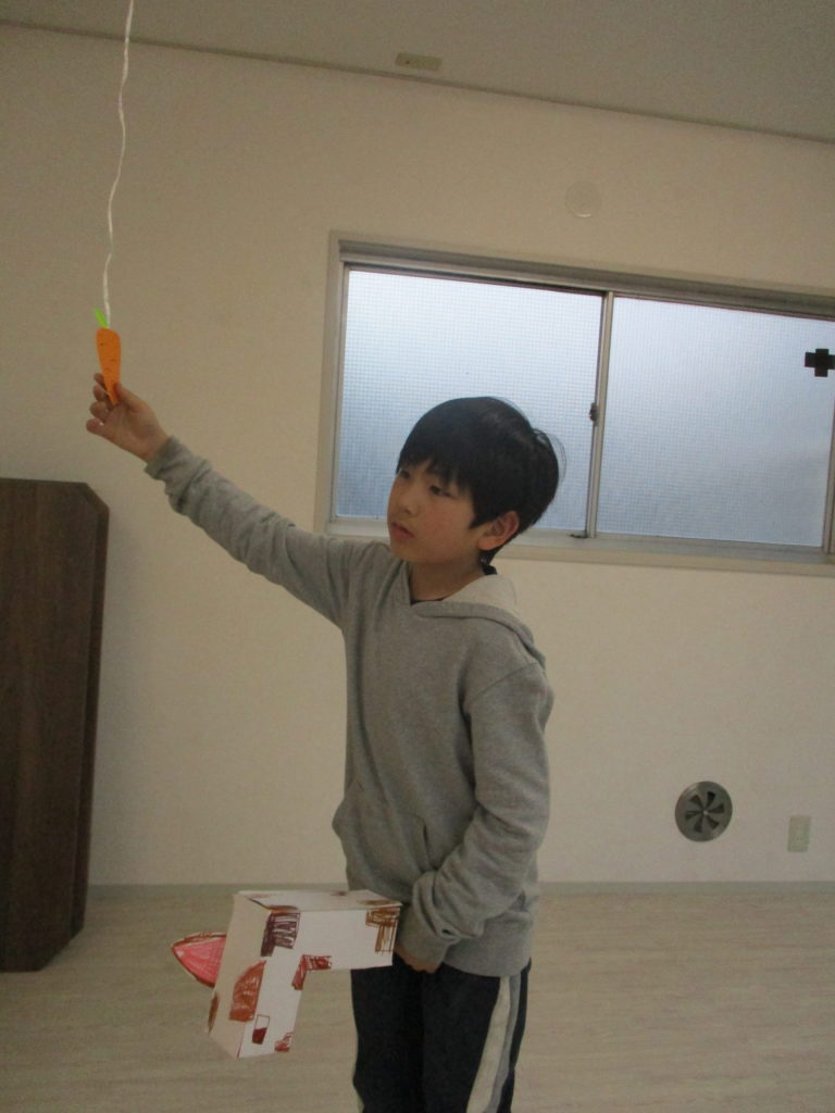 ゴール前に吊るしたニンジンを取ったらクリア!!