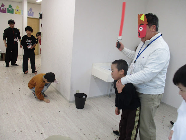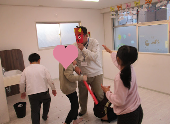 鬼のパンツを作り、「鬼は外!福は内!」とみんなで鬼退治です👹🫘